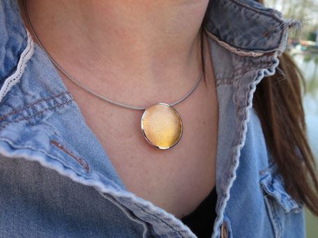 Die Abdrücke werden eingescannt und anschließend in das gewünschte Schmuckstück gelasert. Dann auf das vorab ausgesuchte Schmuckstück aufziehen und fertig.