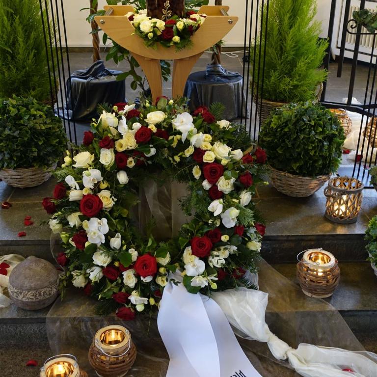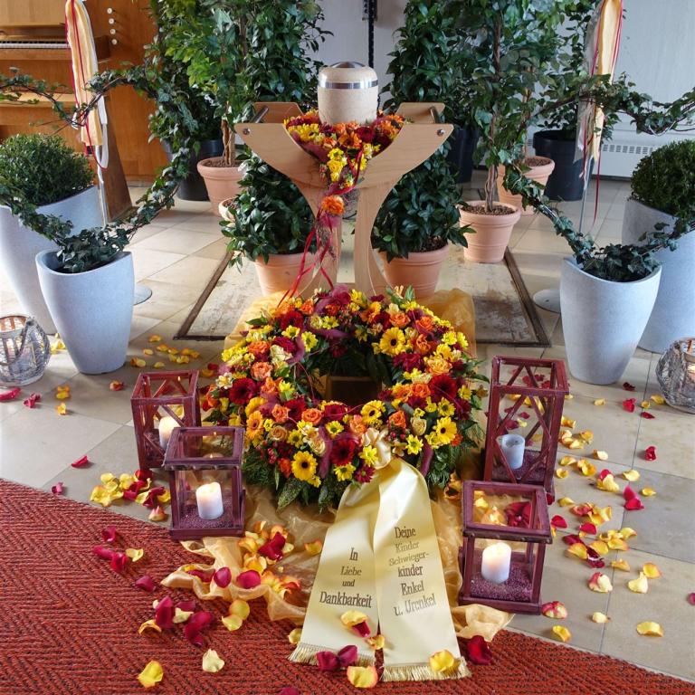 Hier in der Galerie finden Sie einige Fotos zum Thema Urnen, individuelle Gestaltung, Sonderurnen sowie Vorschläge für Blumendekorationen.