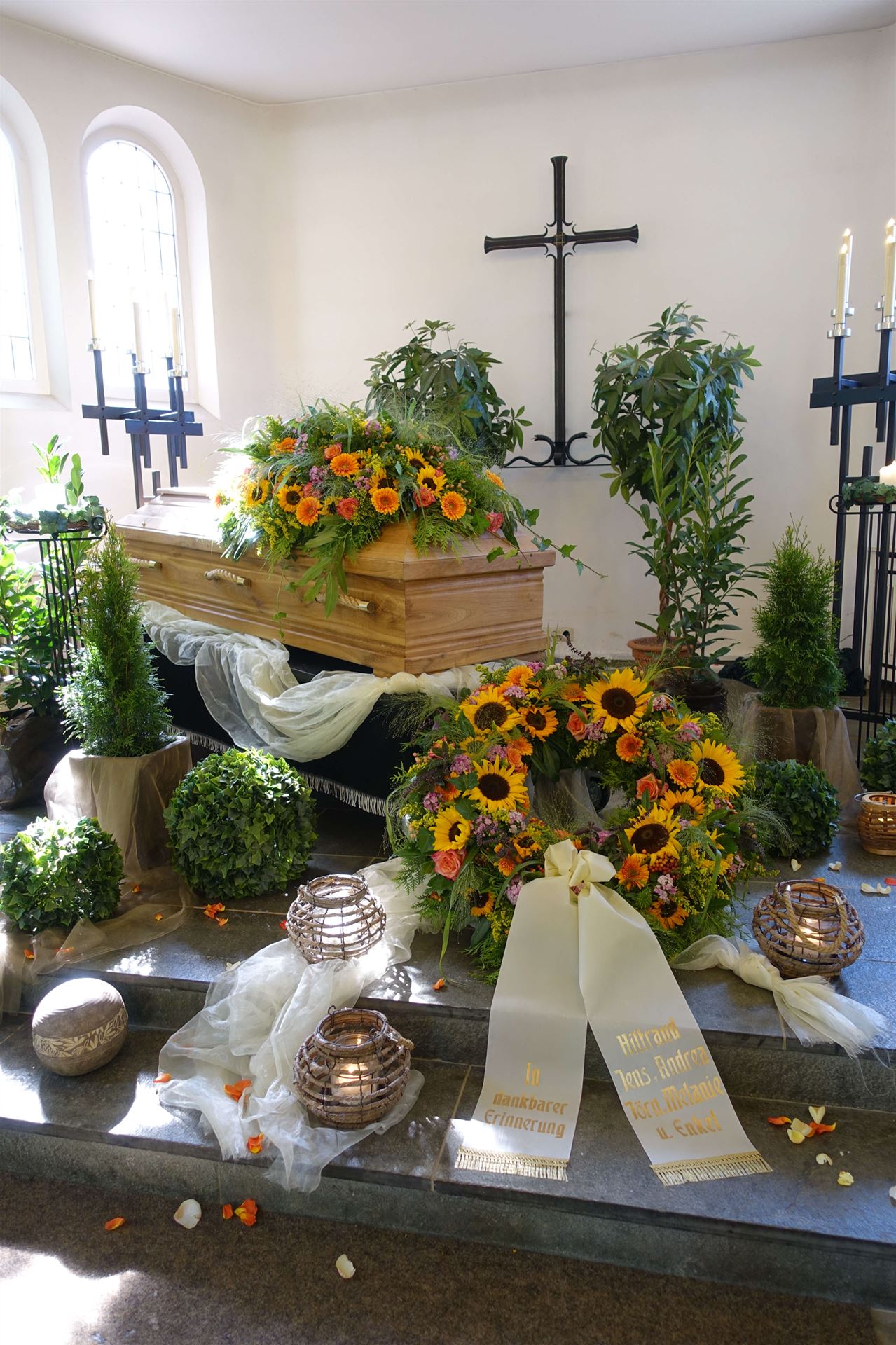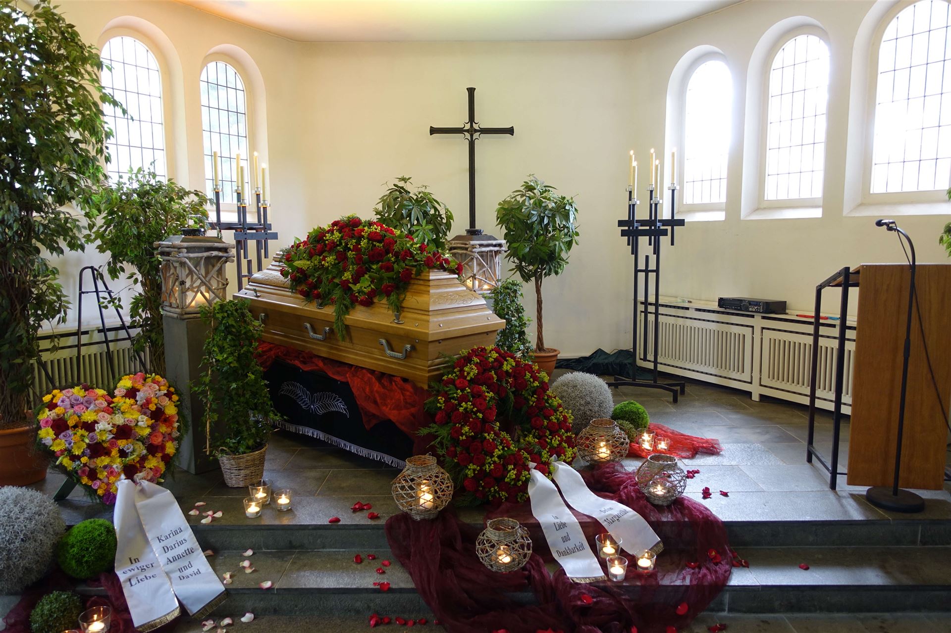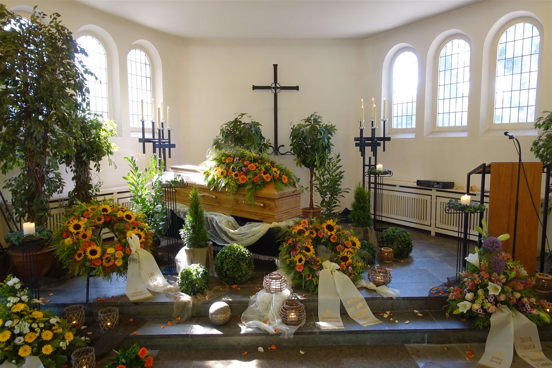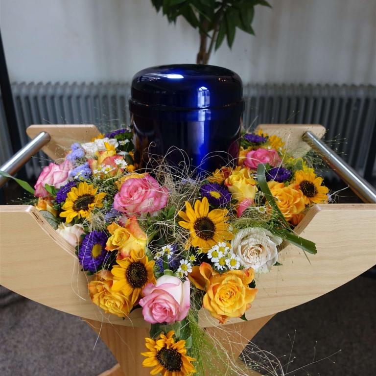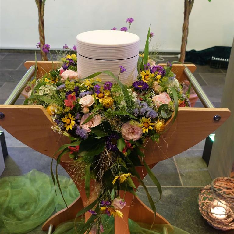 Hier in der Galerie finden Sie einige Fotos zum Thema Urnen, individuelle Gestaltung, Sonderurnen sowie Vorschläge für Blumendekorationen.