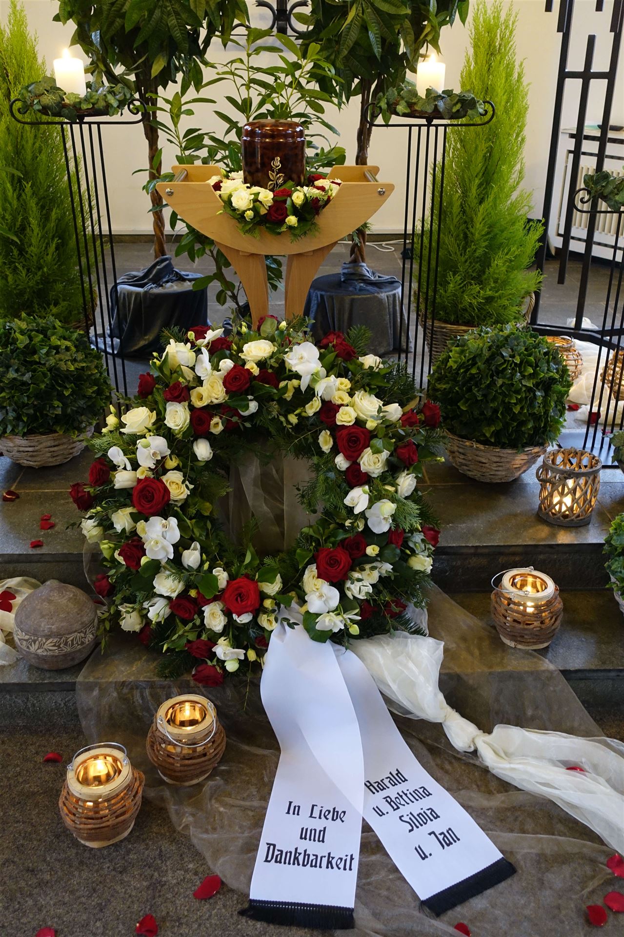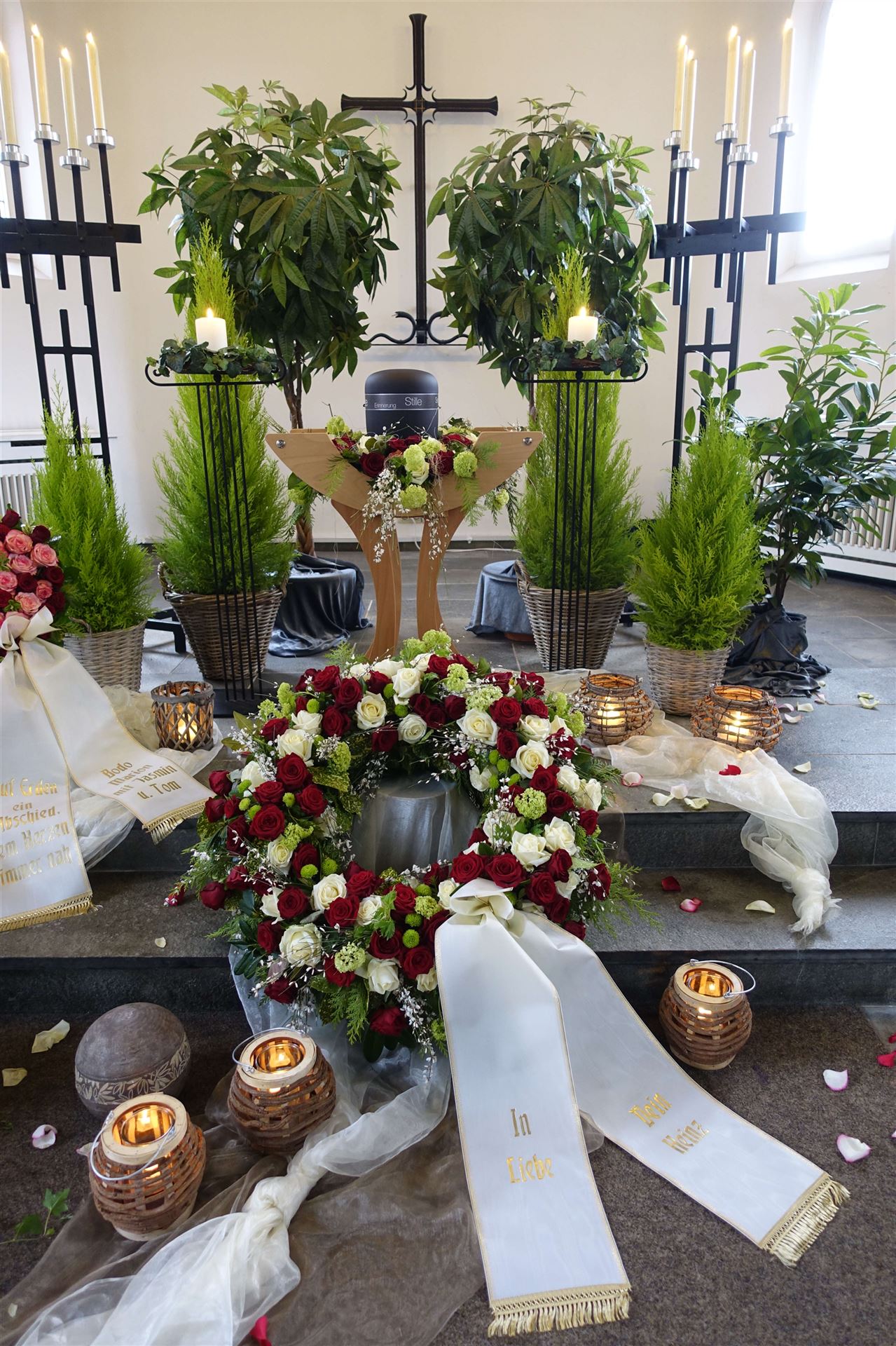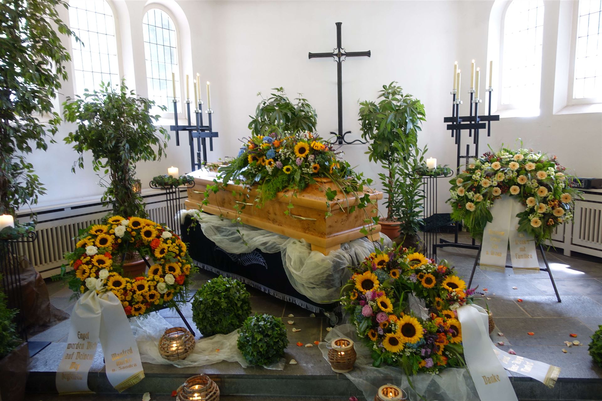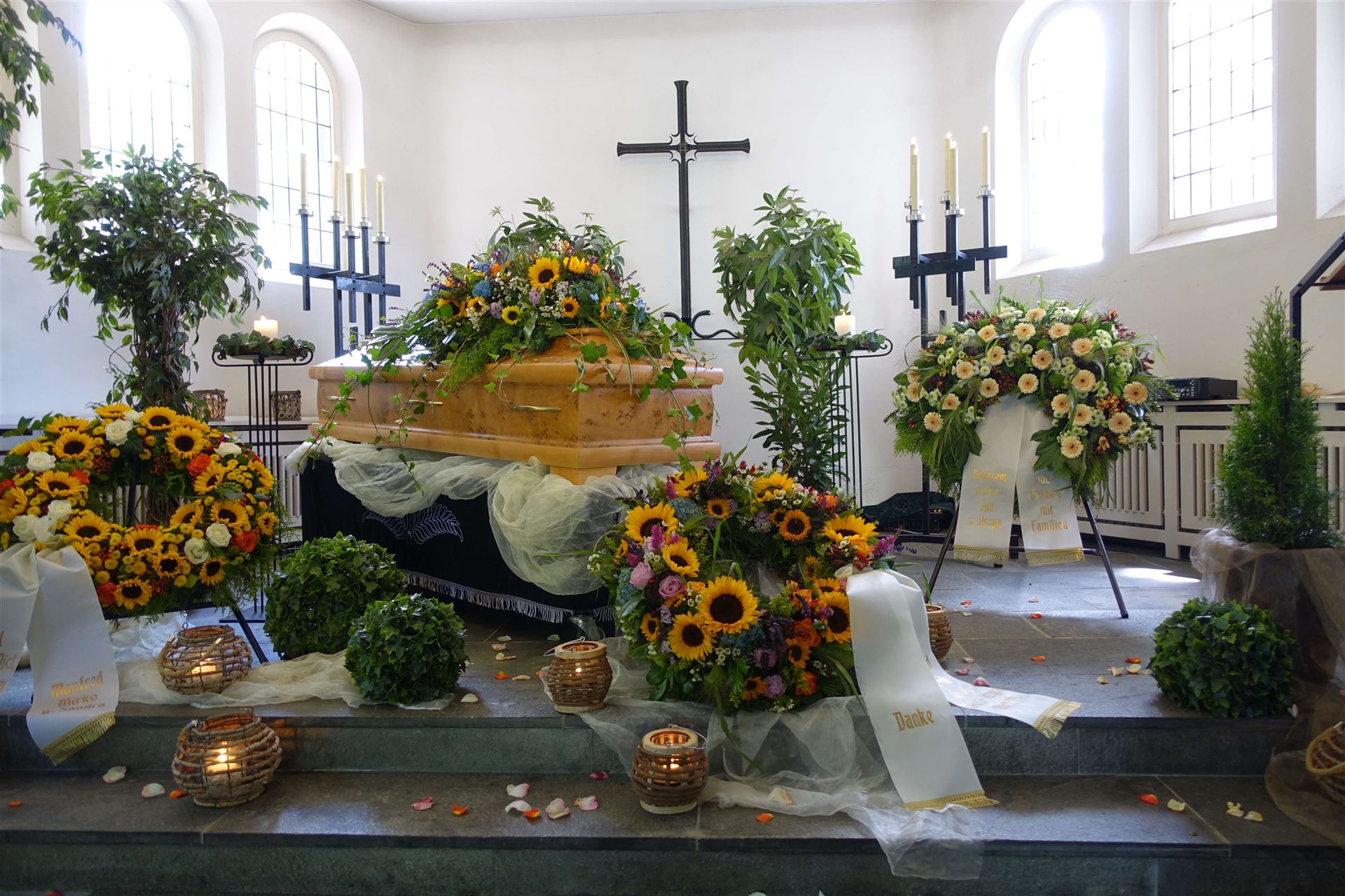Hier in der Galerie finden Sie einige Fotos zum Thema Urnen, individuelle Gestaltung, Sonderurnen sowie Vorschläge für Blumendekorationen.